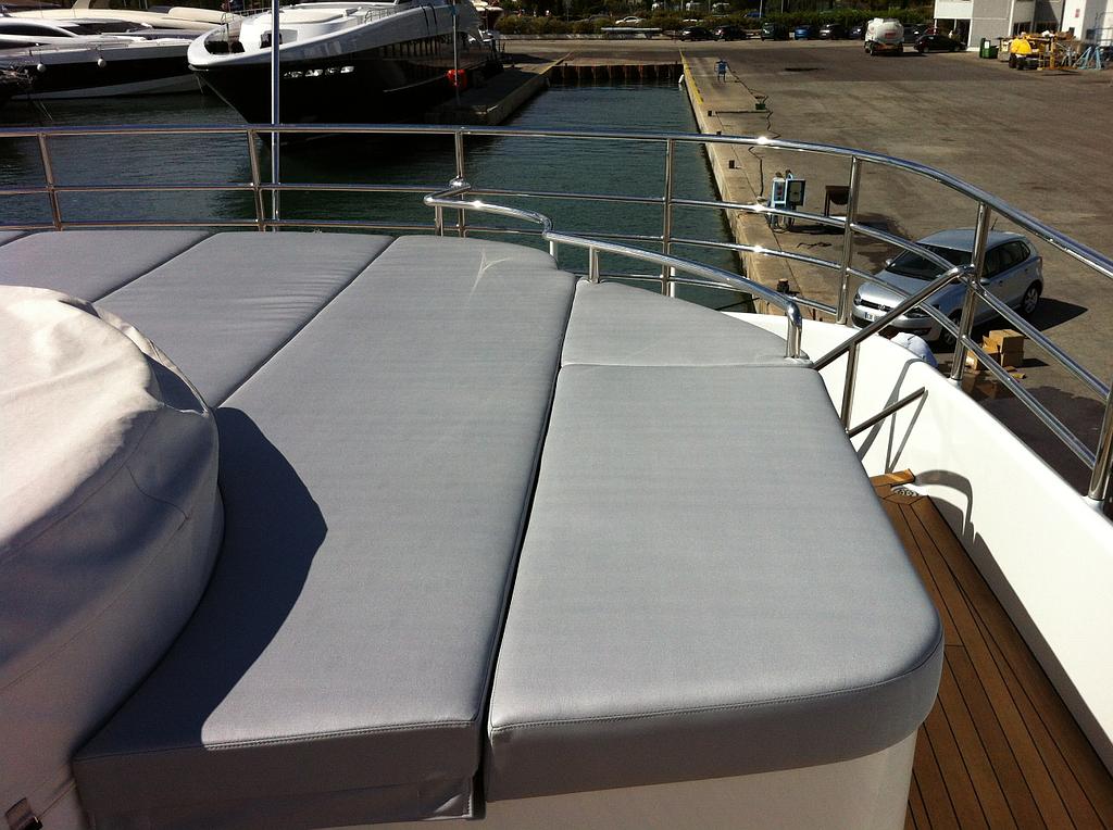 With our three workshops located on key harbours and Marinas, Marine works become a major part of our activity. We create any tape of Covers (camping, winter covers, windows covers, lazy bag covers, bimini covers, etc.), inner planking, carpets, curtains, cushions, (mattress, sunbeds, sofas, etc.).